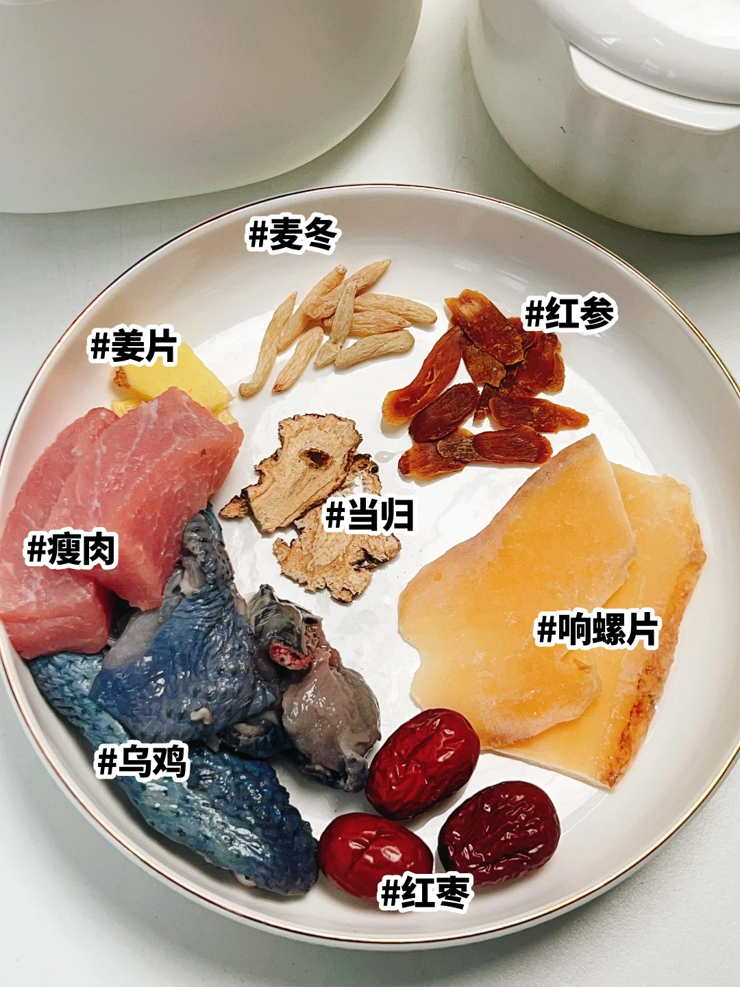 (红参当归)气血组搭配(麦冬响螺片)滋阴润燥组,⭕️经后一周2次,补而不燥,气血越来越满,还是非常养脸养肤的组合。坚持下去,姨妈又乖又准时,手脚从内暖出来。