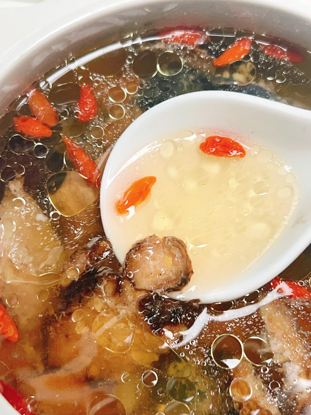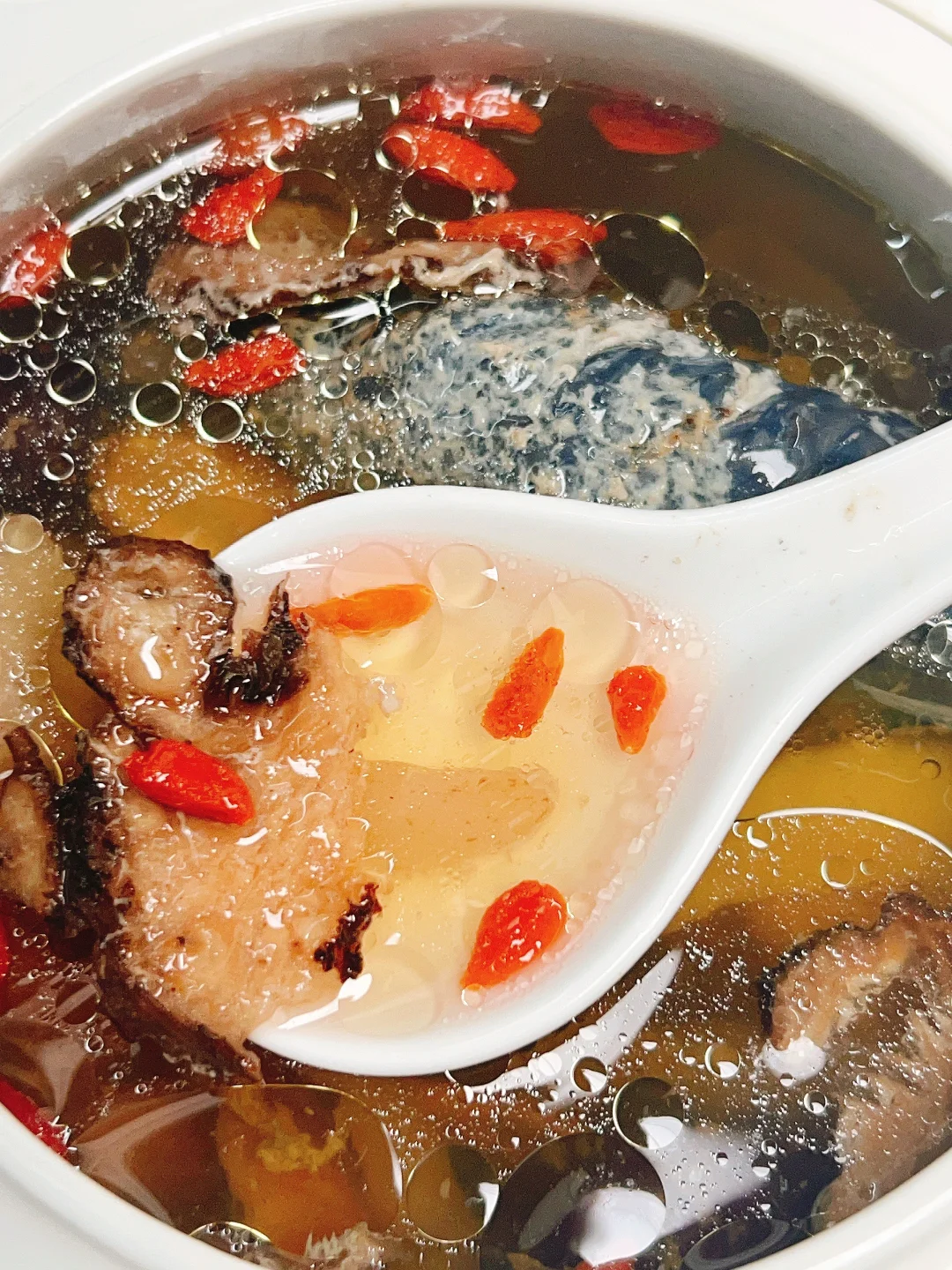 ▪️撒入枸杞,下盐调味即可出锅。非常好喝,略略的甜味香香的当归药膳汤味。