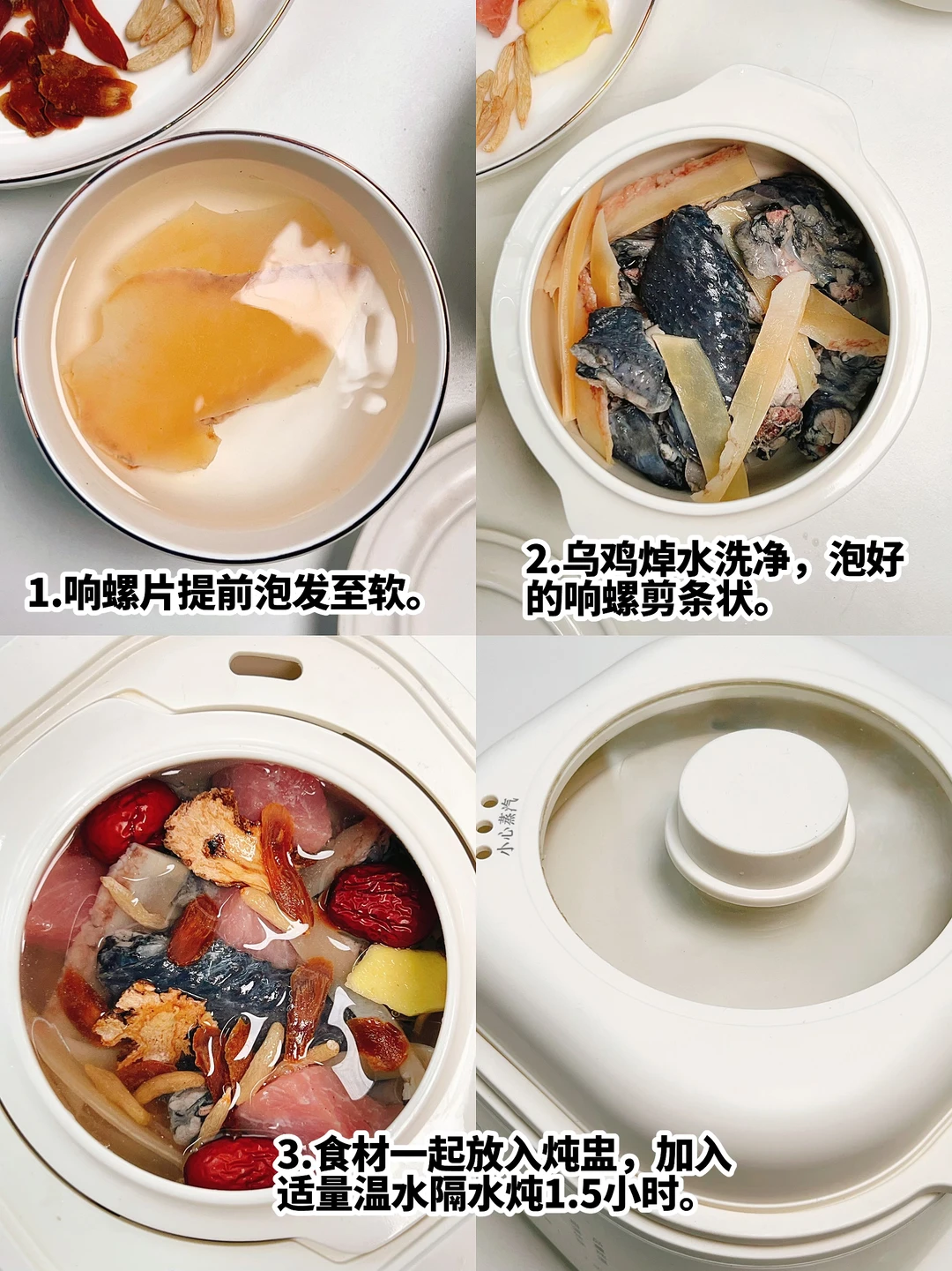▪️全部食材放入炖盅,加适量(温水),隔水炖1.5-2小时。