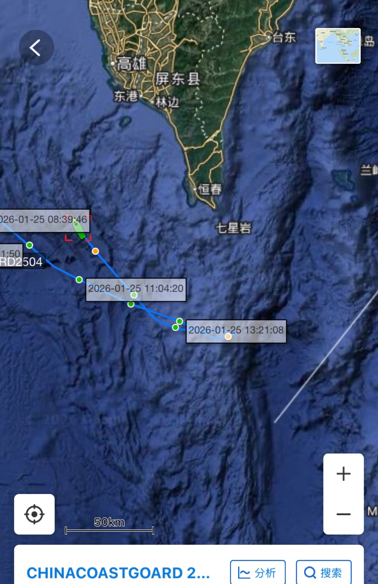 中国海警5901舰和2504舰抵达巴士海峡后原路返回,距离巴丹群岛约40海里。烽火问鼎计划热点观点