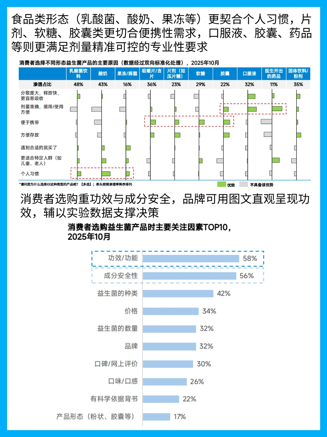 ✅ 形态偏好:食品类(酸奶/果冻)日常吃,片剂/胶囊更便携专业