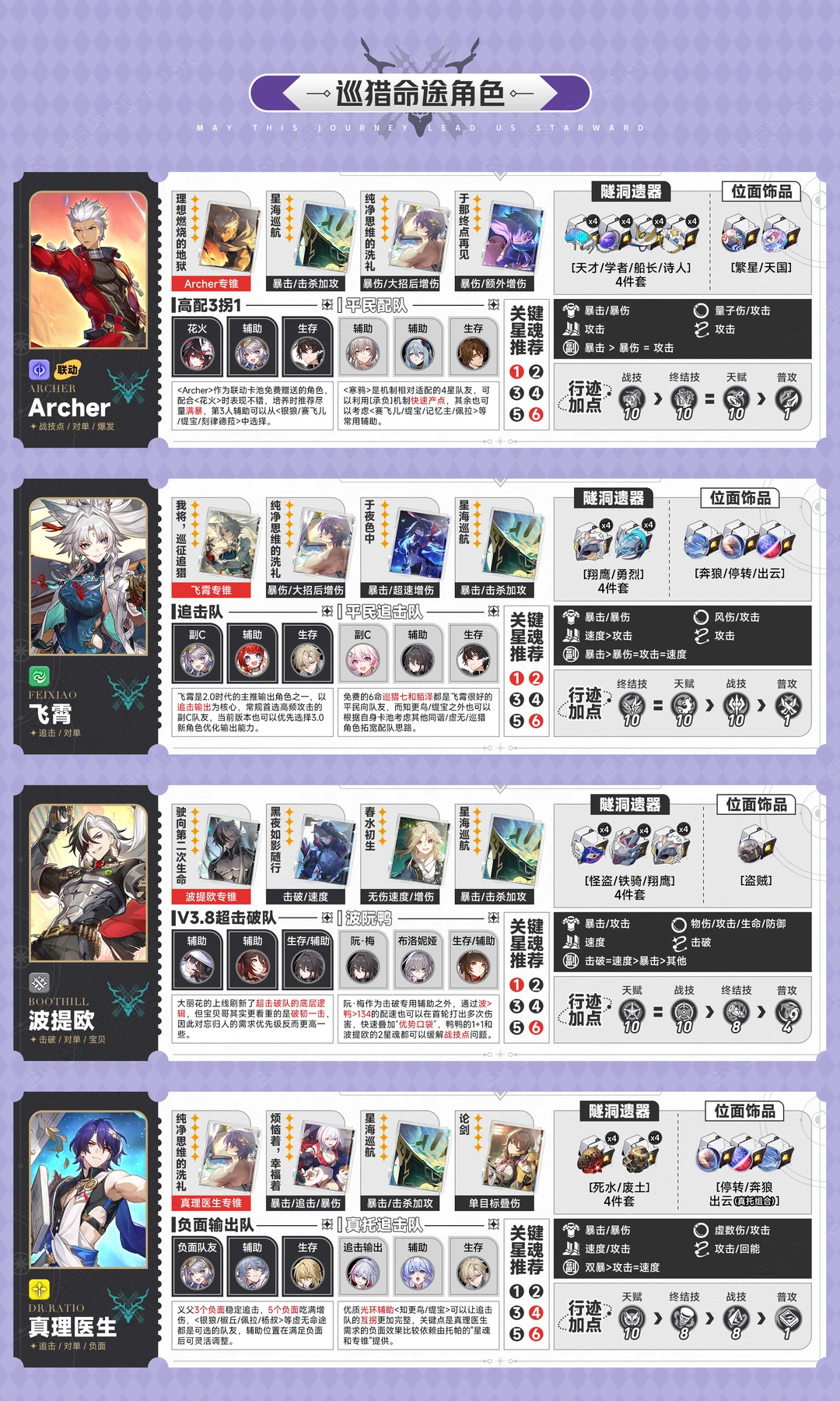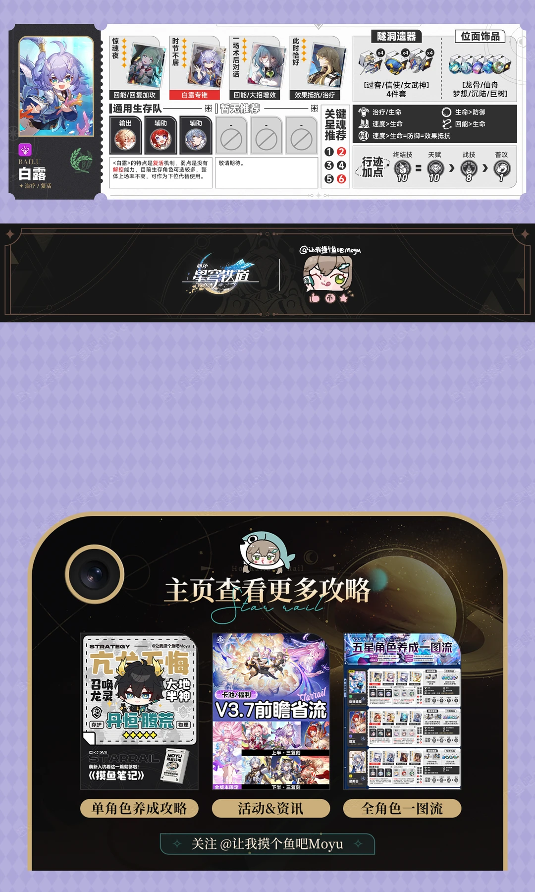 将将!摸鱼来啦! 牙白!又是熟悉的一图流频道! 𖦹ࡇ𖦹 .ᐟ.ᐟ (虽然没多少人看但还在坚持肝系列 鱼酱的全网坠晚【崩铁3.8版本全角色】养成合集! 按照命途顺序依次排布: 虚无 ➡️ 记忆 ➡️ 存护 ➡️ 同谐 ➡️ 毁灭 ➡️ 巡猎 ➡️ 智识 ➡️ 丰饶