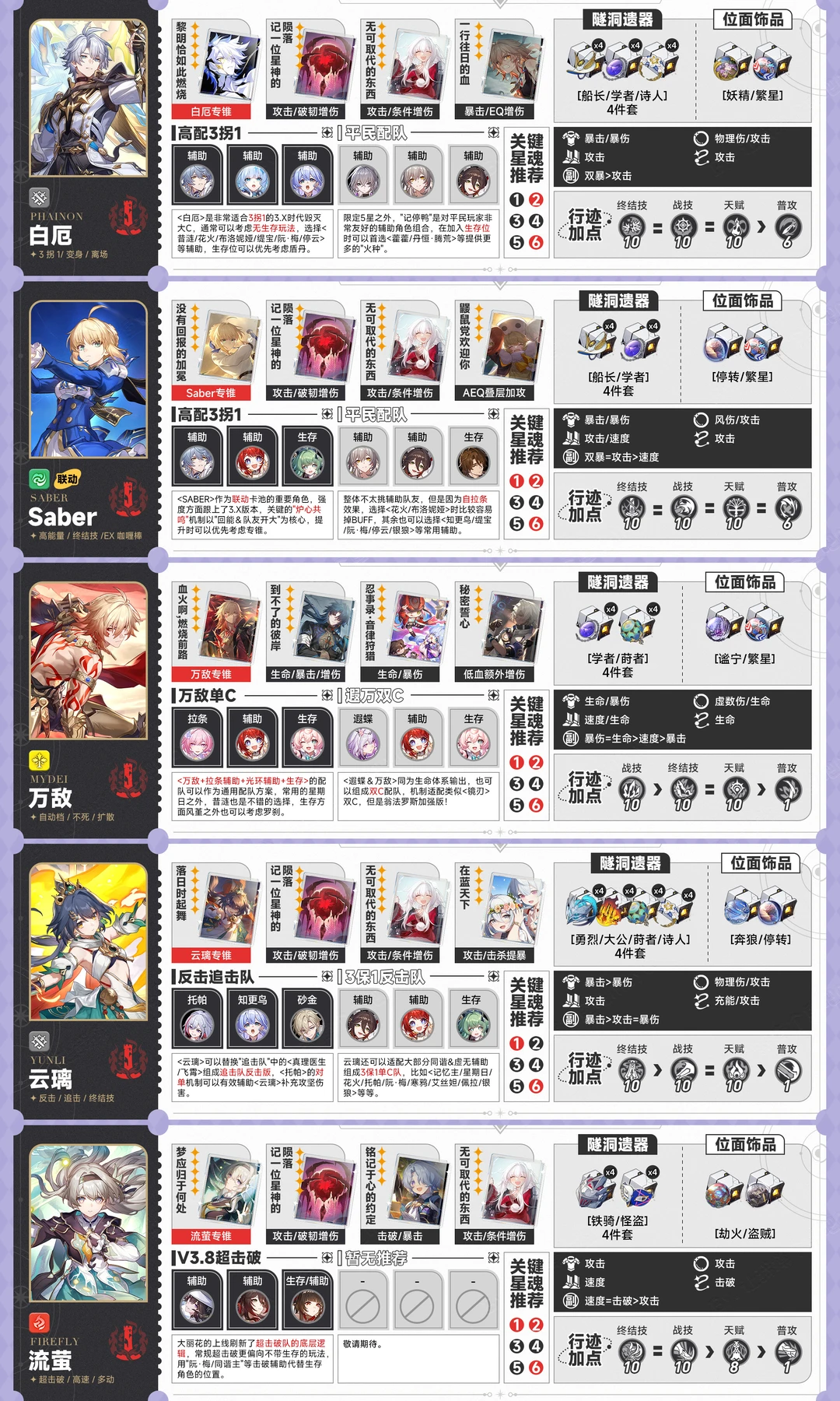星铁V3.8丨全5星角色一图流养成攻略