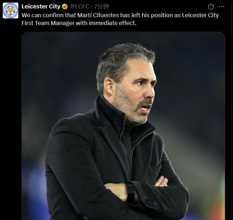 官方写道:“马蒂·西富恩特斯于2025年7月接手球队。莱斯特城足球俱乐部的每一个人都对他在此期间表现出的专业精神和奉献精神表示感谢。”