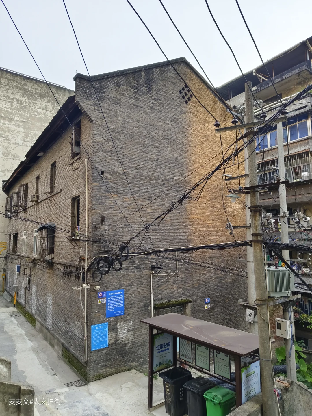 斑驳的红砖墙,爬满了岁月的痕迹,仿佛在静静诉说着往昔故事。纵横交错的电线,编织出独特的生活网络,偶尔有鸟儿停歇,叽叽喳喳,为石坝滩增添几分生机。石坝滩与李家沱正街交汇处,藏着几家不起眼的小店。杂货店里摆满了日常用品,老板总是热情地与熟客唠家常。邻里间热情的招呼声此起彼伏,那是这个老社区独有的烟火气。
