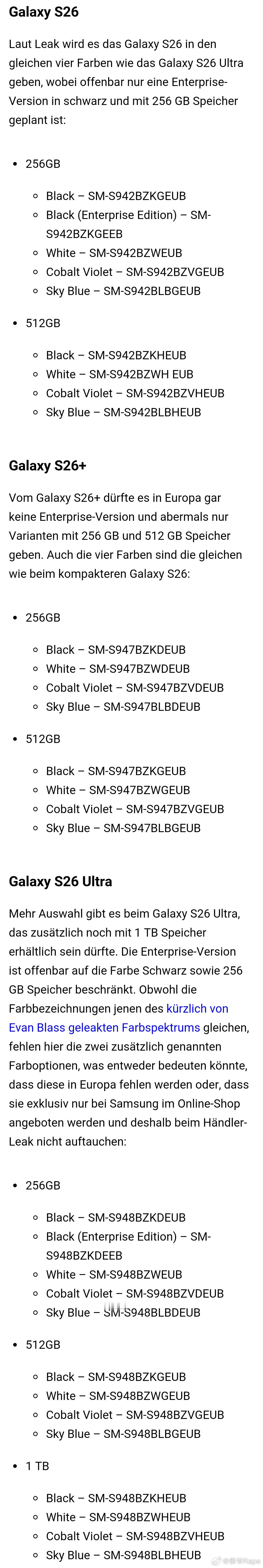 三星S26系列猛料全曝光三款机型齐发,欧版起步直接拉满256GB,大存储党直接冲!全系配色超丰富,钴紫主打款辨识度拉满,Ultra还解锁1TB顶配版本。S26+直屏窄边配圆润立边,握持感直接升级,4900mAh续航稳扎稳打;Ultra经典垂直三摄布局,旗舰质感在线。这波三星的设计与配置,你磕不磕?三星GalaxyS26三星GalaxyS26Ultra三星民间艺术观察数码闲聊站