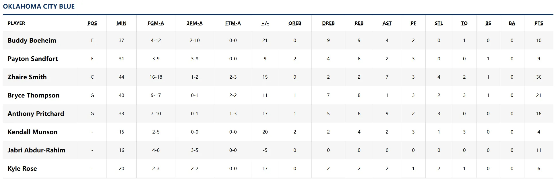 双杀!今日雷霆背靠背在客场113:92大胜圣迭戈快船,扎伊尔·史密斯出战44分钟,18中16拿下36分7助4断,布莱斯·汤普森21分8板,勃海姆10分,桑德福特9分。编辑by蓝色狂潮OKC猛龙vs雷霆雷霆
