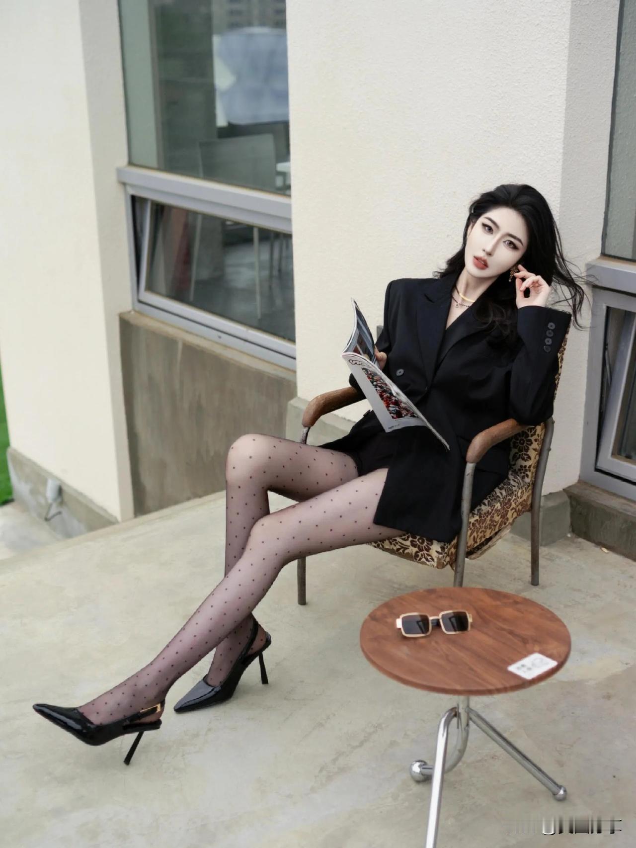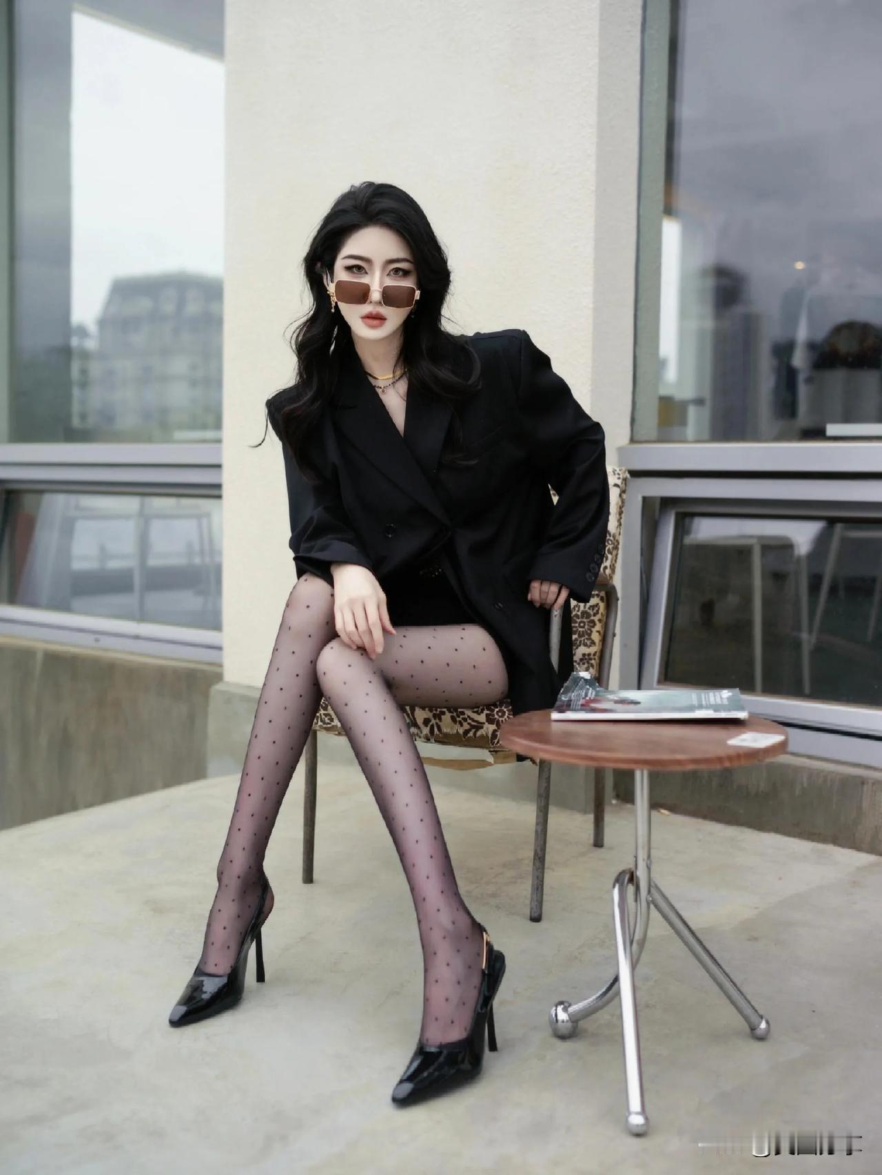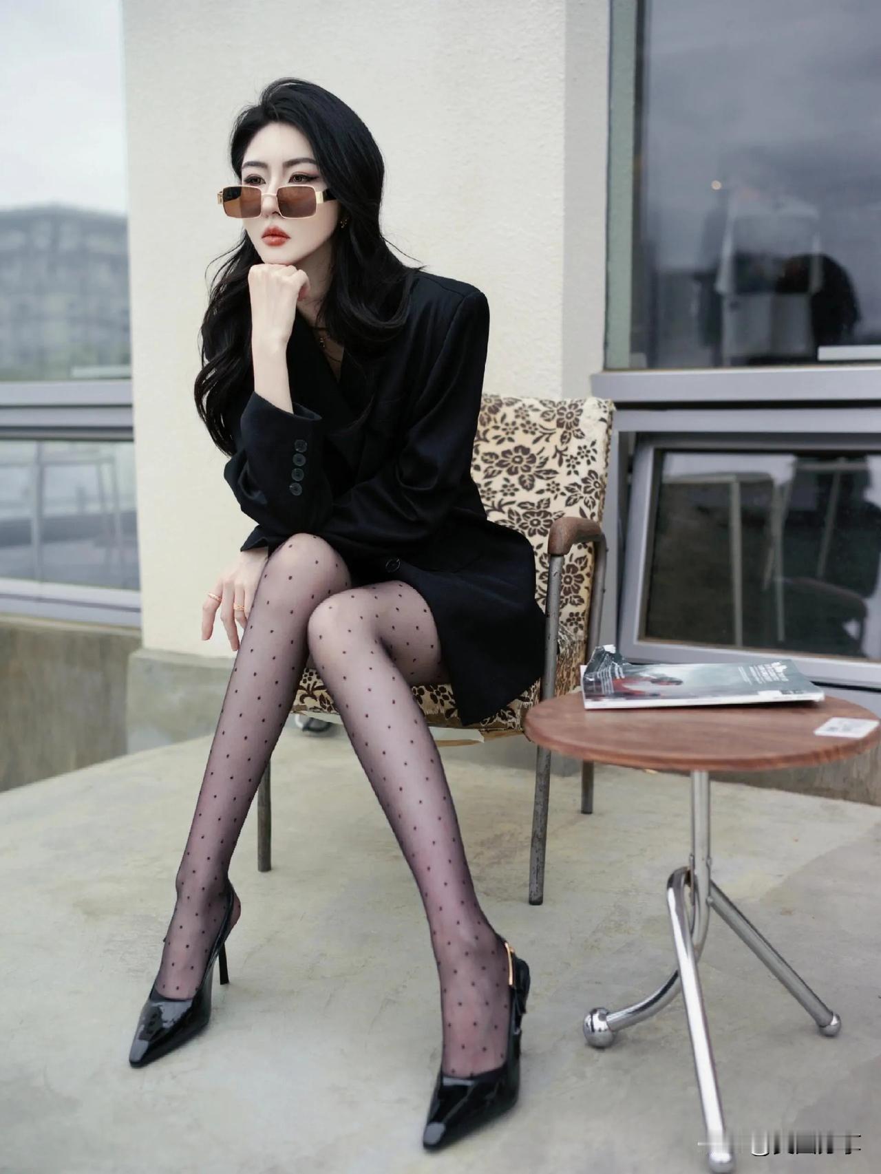 街拍性感黑丝美人[心],黑西装搭高跟,优雅迷人吸睛!高清美女 性感黑丝美女 街拍/大长腿美女