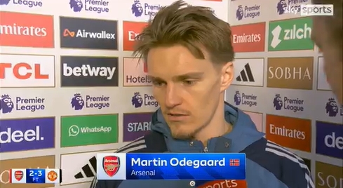 直播吧01月26日讯英超焦点战,阿森纳2-3不敌曼联,厄德高赛后接受了天空体育采访。
