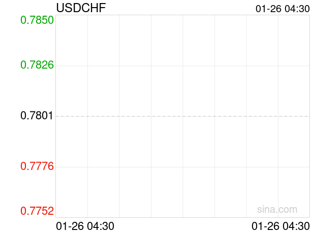 新浪外汇消息2026年01月26日,截至04时30分,外汇市场上美元兑瑞士法郎汇率跌破1美元兑换0.7752瑞士法郎。跌幅为-0.6281%