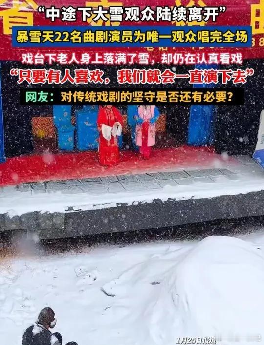 暴雪天22名演员为唯一观众唱完全场!近日,一段“暴雪天22名曲剧演员为唯一观众唱