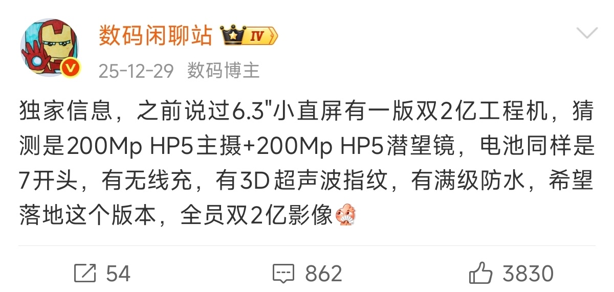 独家信息,D9500小屏旗舰确定双2亿,200Mp大底主摄+50Mp超广角+200Mp大底潜望长焦;6.3小屏唯一大底双2亿,提前祭出友商迭代旗舰的方案,LIPO极窄四等边√7K级大电池√无线充√超声波指纹√满级防水√多光谱镜头√影像联名√
