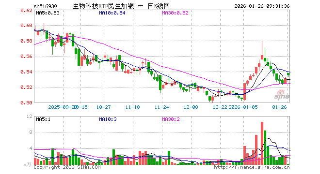 生物科技ETF基金(516930)业绩比较基准为中证生物科技主题指数收益率,管理人为民生加银基金管理有限公司,基金经理为周帅,成立(2021-08-05)以来回报为-46.95%,近一个月回报为4.10%。