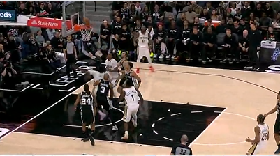 第三节比赛,赫伯特-琼斯杀入禁区2分再次打进,鹈鹕第三节领先马刺20分。