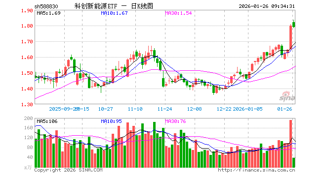 1月26日,科创新能源ETF(588830)开盘涨1.17%,报1.820元。科创新能源ETF(588830)重仓股方面,晶科能源开盘涨1.45%,阿特斯涨0.78%,天合光能涨5.31%,容百科技跌2.42%,大全能源跌0.45%,厦钨新能涨1.84%,嘉元科技跌0.79%,天奈科技涨2.01%,孚能科技涨1.35%,固德威涨4.91%。