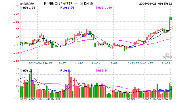 科创板新能源ETF(588960)开盘涨0.55%,重仓股晶科能源涨1.45%,阿特斯涨0.78%
