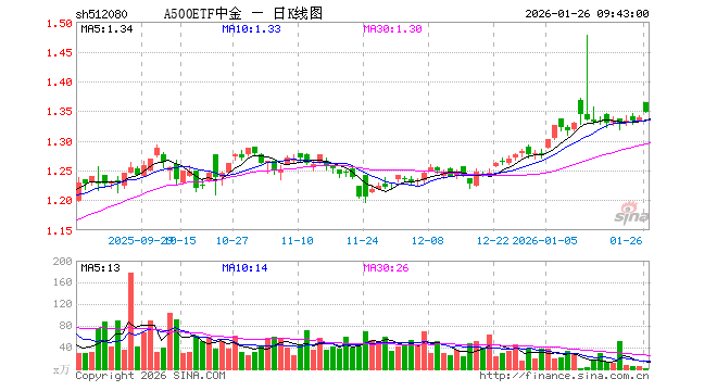 1月26日,A500ETF中金(512080)开盘涨1.87%,报1.364元。A500ETF中金(512080)重仓股方面,宁德时代开盘涨1.45%,贵州茅台涨0.26%,中国平安涨0.16%,中际旭创跌0.85%,紫金矿业涨3.14%,招商银行涨0.00%,新易盛跌0.84%,美的集团涨0.03%,兴业银行跌0.05%,长江电力涨0.19%。