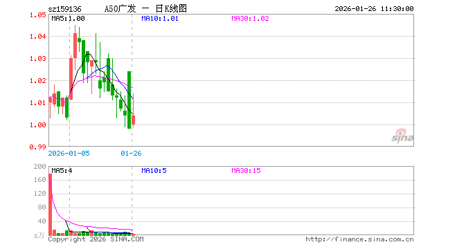 A50ETF广发(159136)业绩比较基准为中证A50指数收益率,管理人为广发基金管理有限公司,基金经理为陆志明,成立(2025-12-16)以来回报为-0.19%,近一个月回报为-0.33%。