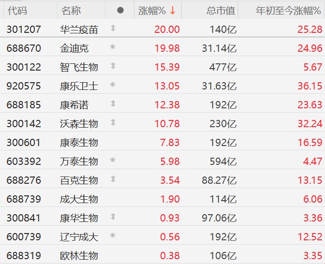 格隆汇1月26日|A股市场疫苗股集体走强,其中,华兰疫苗、金迪克20CM涨停,智飞生物涨超15%,康乐卫士涨超13%,康希诺涨超12%,沃森生物涨超10%,康泰生物涨超7%,万泰生物涨近6%。