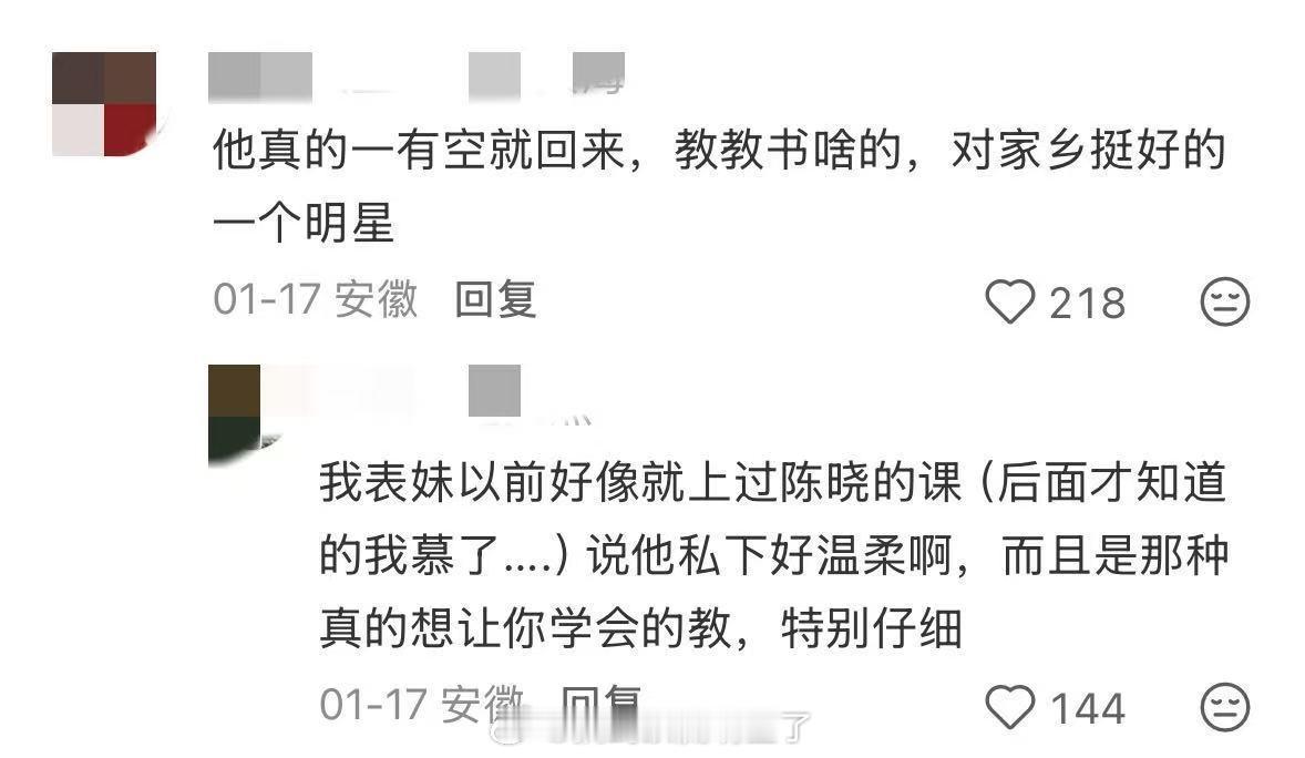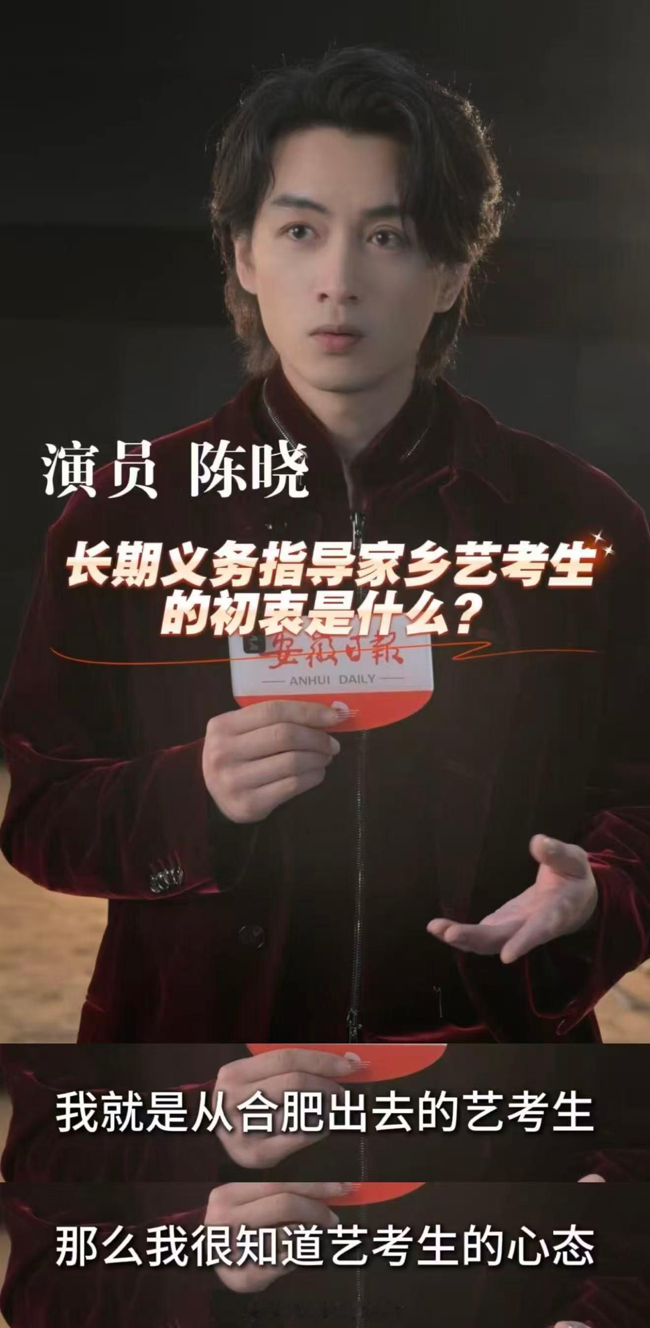 陈晓回家乡台录制安徽卫视春晚 陈晓长期义务指导合肥艺考生 有这么重情义的陈晓这才是真正的安徽骄傲吧!私下一直义务带艺考生,非常朴素地只是想给他们一些经验和勇气,就像当初他的老师给他的信心一样!安徽人是真的认他👍之前上过他课的也都表示哥本人非常亲切温柔!这次还直接回合肥录制安徽春晚,亲自为家乡站台宣传!真的是很热爱自己家乡的好演员了!
