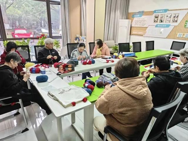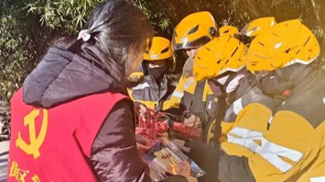 这支成立于2017年的编织队,由小区爱好针织的热心居民组成。每年冬天,她们都会将亲手织就的围巾、绒帽、手套等织物赠送给社区独居老人、高龄老人及困难群体。近两年,看着外卖骑手、快递员等新就业群体风里来雨里去的奔波身影,阿姨们也渐渐将关怀的目光投向了这群户外劳动者。