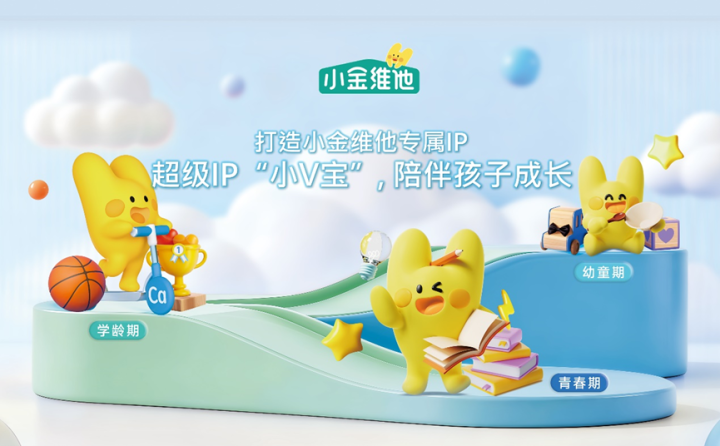 同时,小金维他®自有IP“V宝”将继续扮演孩子身边科学、温暖的成长伙伴。未来,“小黄人”与“V宝”将形成协同矩阵:小黄人以“超级明星”角色破圈引流,V宝则以“贴心好友”身份深耕用户关系与情感陪伴。两者互补,共同构建品牌独特而深厚的情感资产。