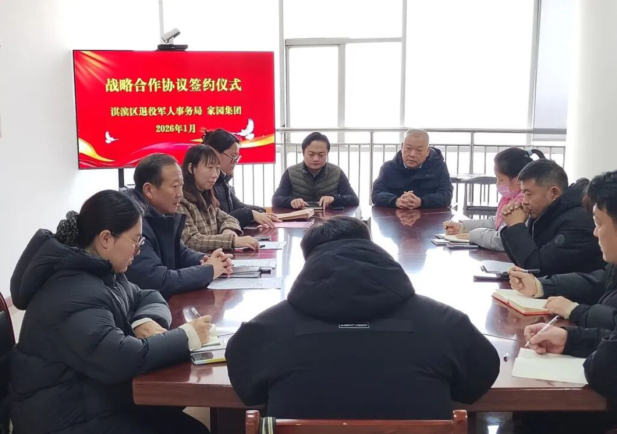近日,鹤壁市淇滨区退役军人事务局与家园集团举行战略合作签约仪式。合作方式主要以“政企联动”模式搭建起双向服务桥梁,有效整合资源优势,携手为退役军人就业发展搭桥铺路。