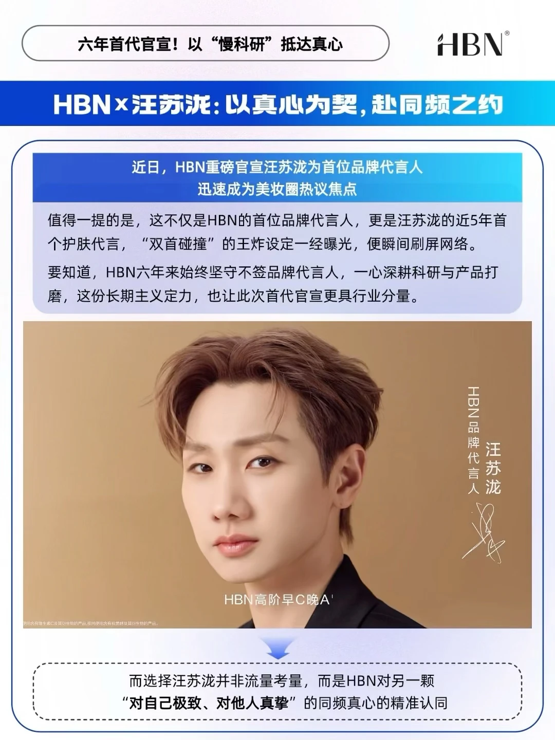 🟡这是HBN成立六年来首位品牌代言人,也是汪苏泷近五年来首个护肤代言,一个深耕护肤功效科研,一个专注音乐呈现,这是一场真心换真心的双向奔赴,也是品牌内核与代言人特质的合二为一。