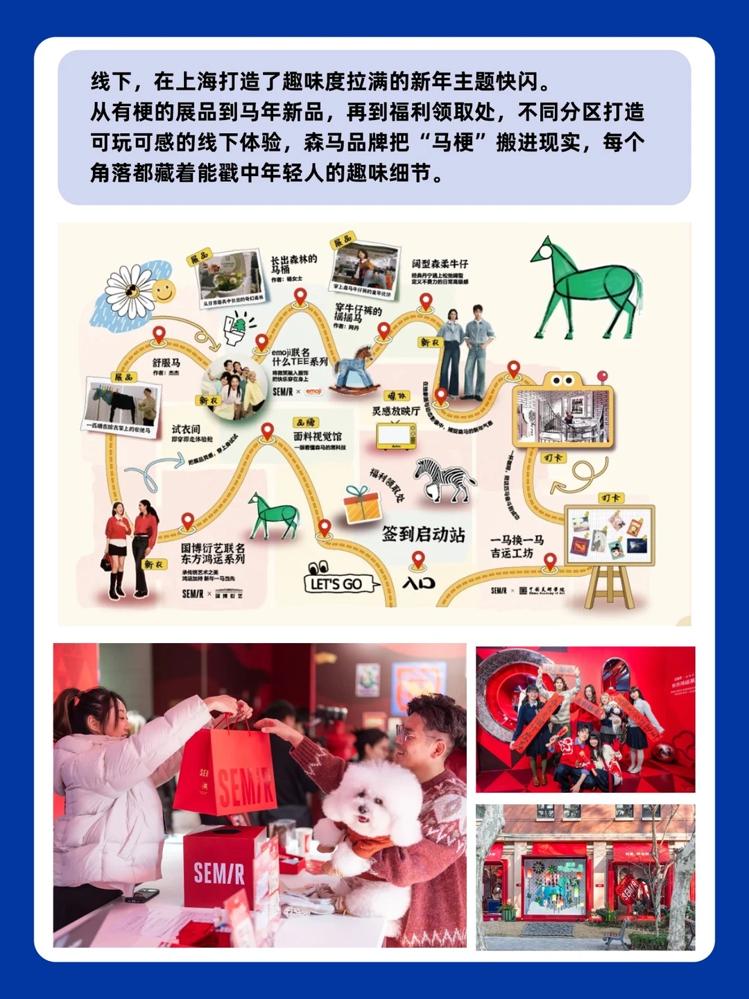 🟠最值得提的就是在上海打造了趣味度拉满的新年主题快闪, “森马就是长出森林的马桶”、“一匹晒在晾衣架上的舒服马”,抓马感十足,从有梗的展品到马年新品,再到福利领取处,不同分区打造可玩可感的线下体验,森马品牌把“马梗”搬进现实,每个角落都藏着能戳中年轻人的趣味细节。