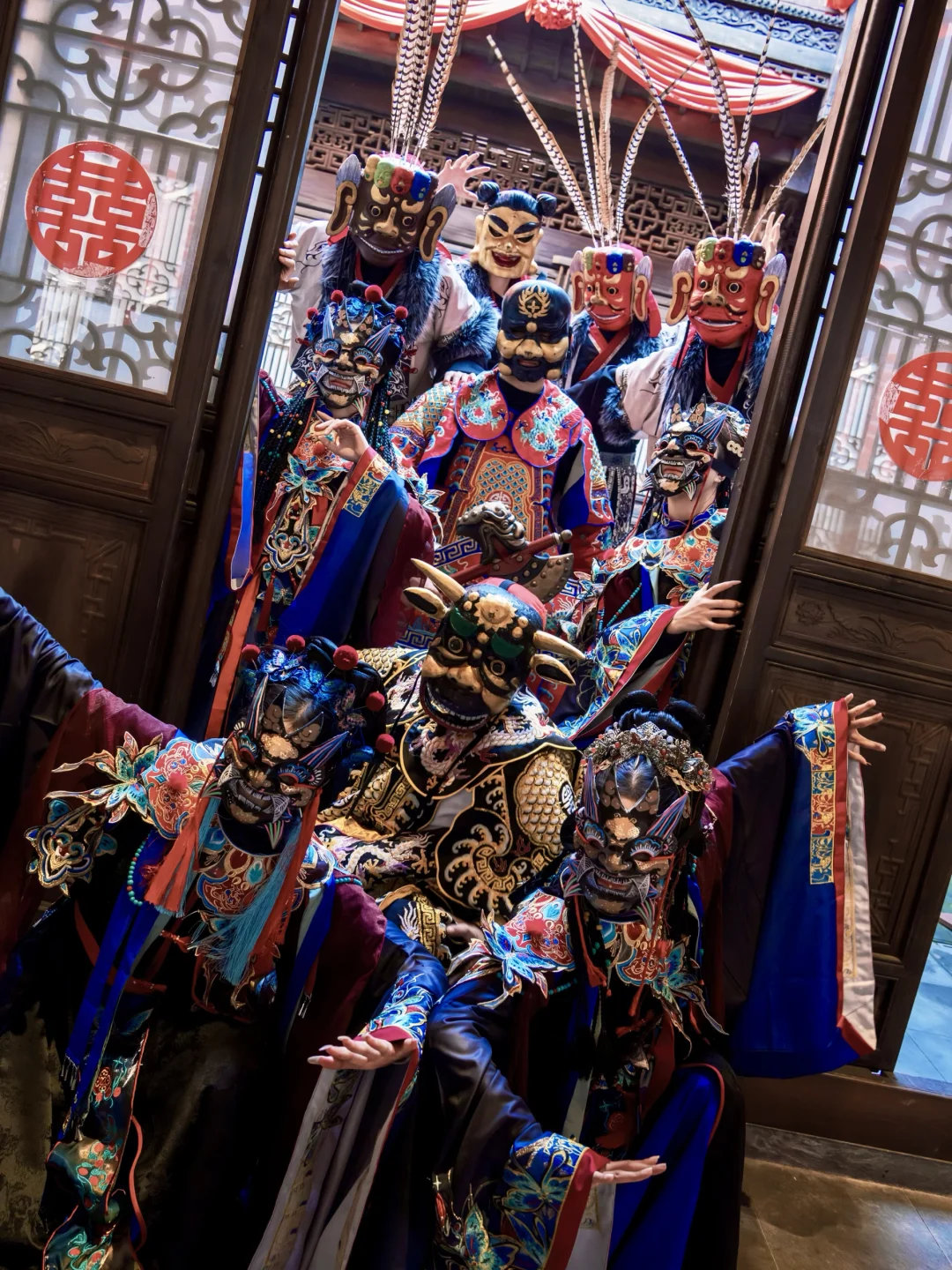 “见傩者,百病消,傩舞起,鸿运盛。”傩舞,承载着千年的历史与文化。当演员们戴上这些面具,便仿佛被赋予了神秘的力量,瞬间化身为神话中的人物,古老的故事也由此上演……