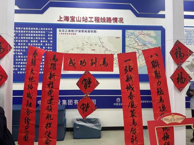 现场还设置了“新春服务区”。来自铁山街区的党员志愿者挥毫泼墨,写下融入高铁建设元素和新春祝福的定制春联和福字,工人们排着队挑选自己喜欢的“年味”;公益理发点前,杨行商业公司派出的爱心商户志愿者理发师为工人师傅们修剪发型,让工人们以清爽的面貌迎接新年。
