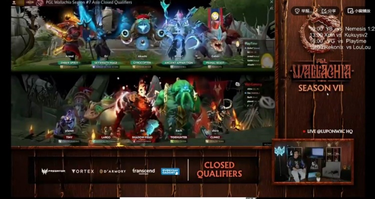 夜魇VG:planet小小、y'朗戈、Xm影魔、Bach潮汐猎人、shiro克林克兹