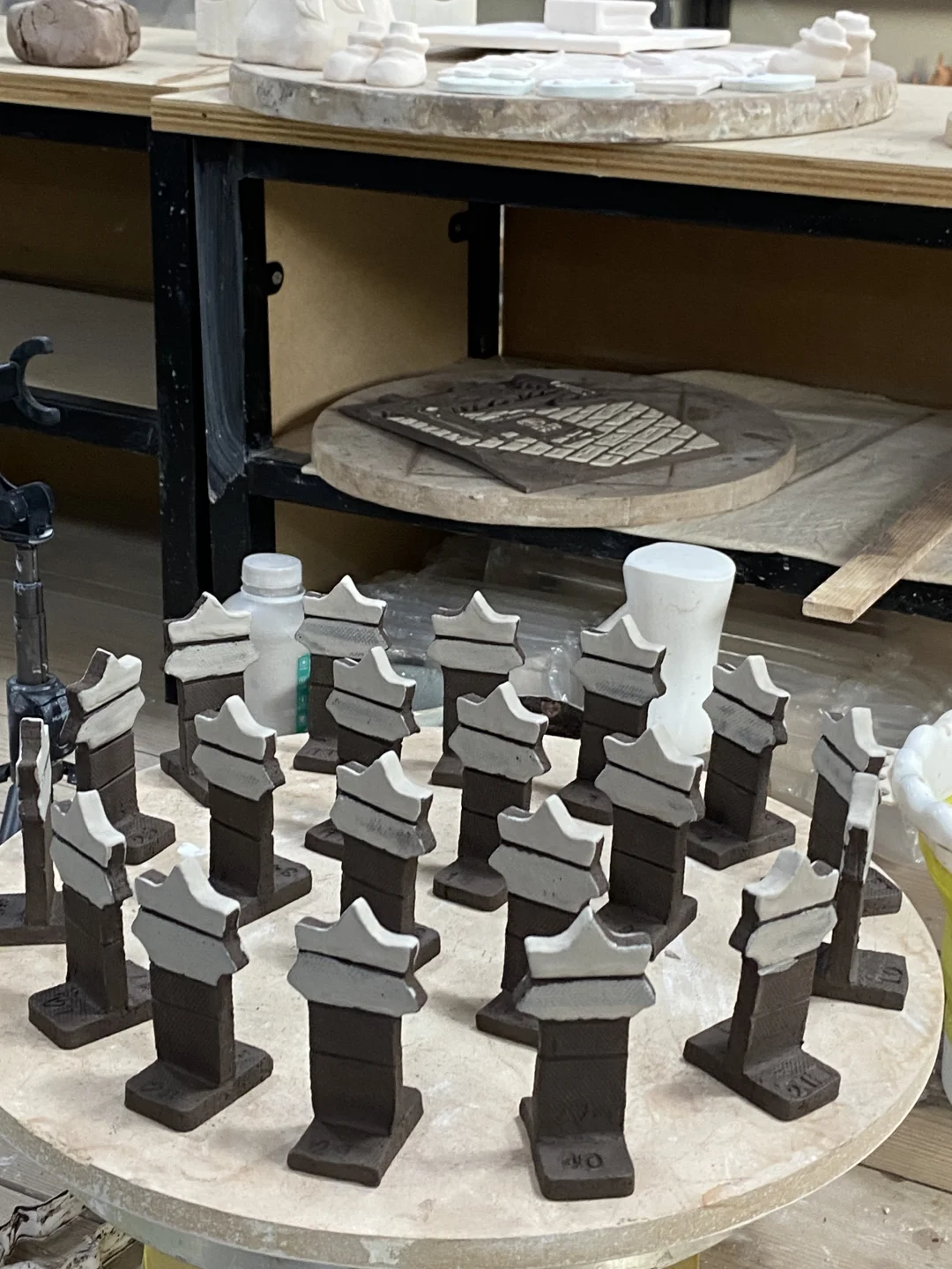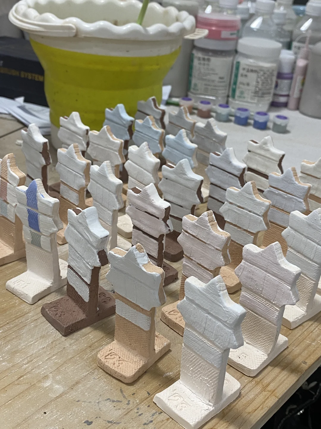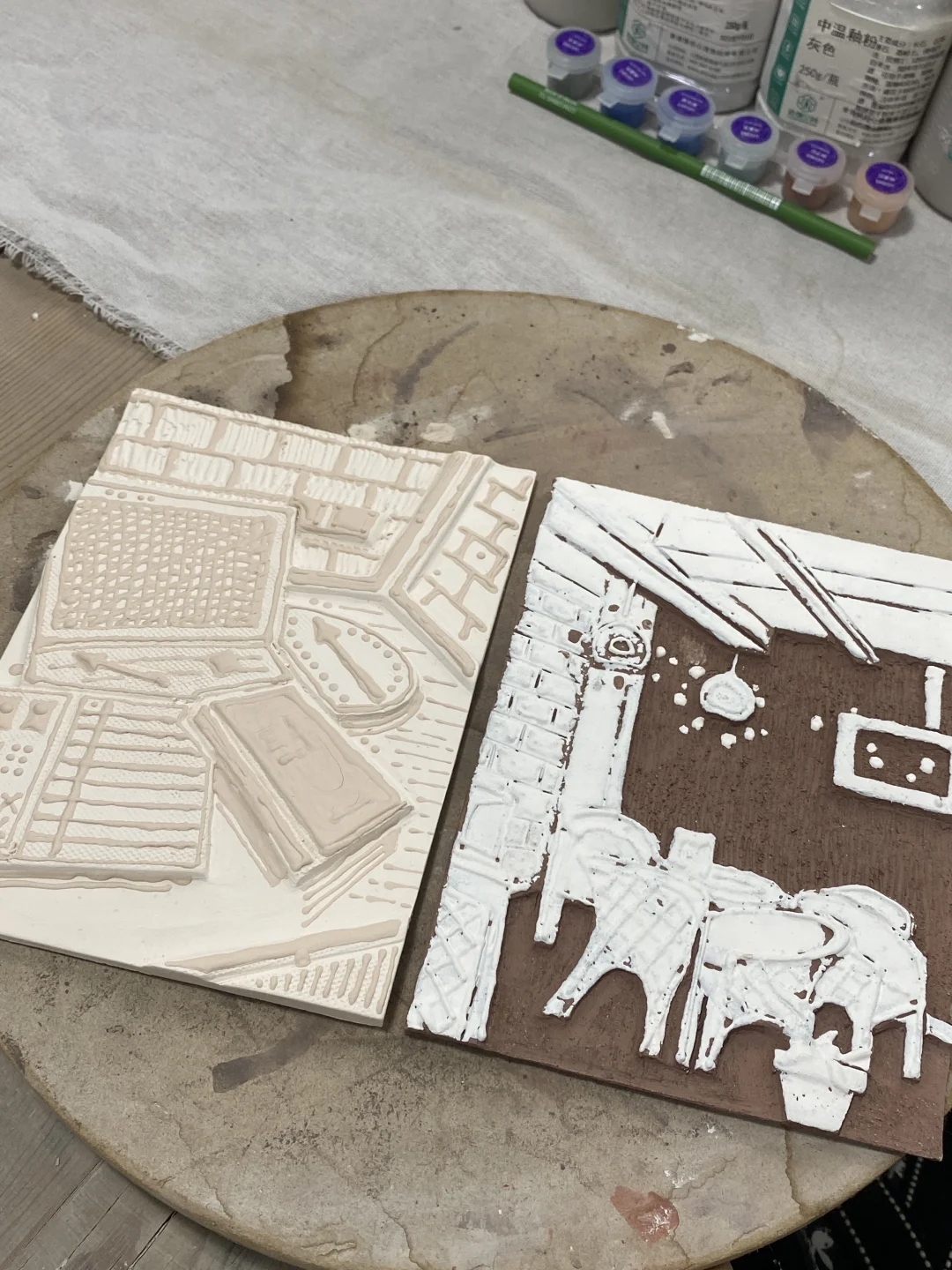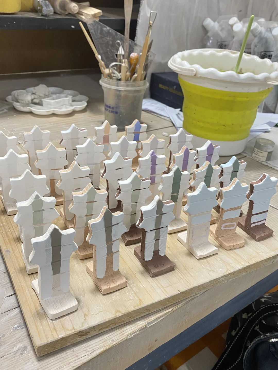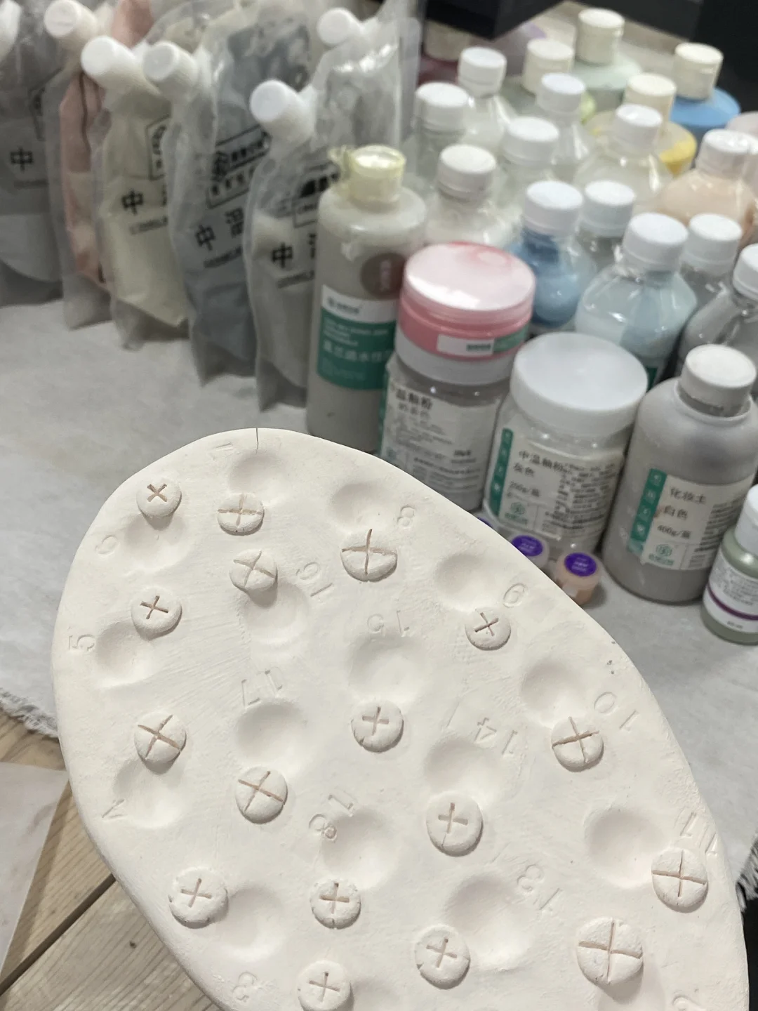 收拾了工作室一角,都把釉料拿出来了! 素烧的已准备好!开始幸福的试色