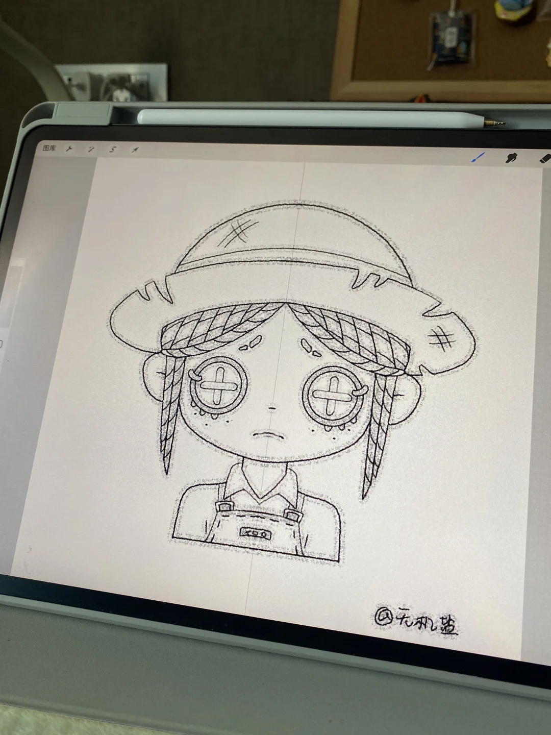 最近刚回来想打打游戏吧好久没玩电子设备了!又自信的下回来第五人格(刚出的时候下过!因为我特别喜欢扣子眼睛👀特喜欢鬼妈妈什么的,看到是扣子就想玩玩,结果新手教程都没坚持打完直接给我吓劝退了( ; ; ))我平时也没有胆子很小,纸嫁衣什么的也玩的呢...就是第五人格玩不了一点我感觉我的心率都要上200了.时隔这么多年,我觉得我应该成长了,又自信满满地下回来,然后又被水灵灵劝退了🫶🫶但是实在喜欢扣子眼睛 打发时间就画几个小头像假装有点参与感🫵加上这个包浆笔刷好喜欢,感觉能继续画下去✍️