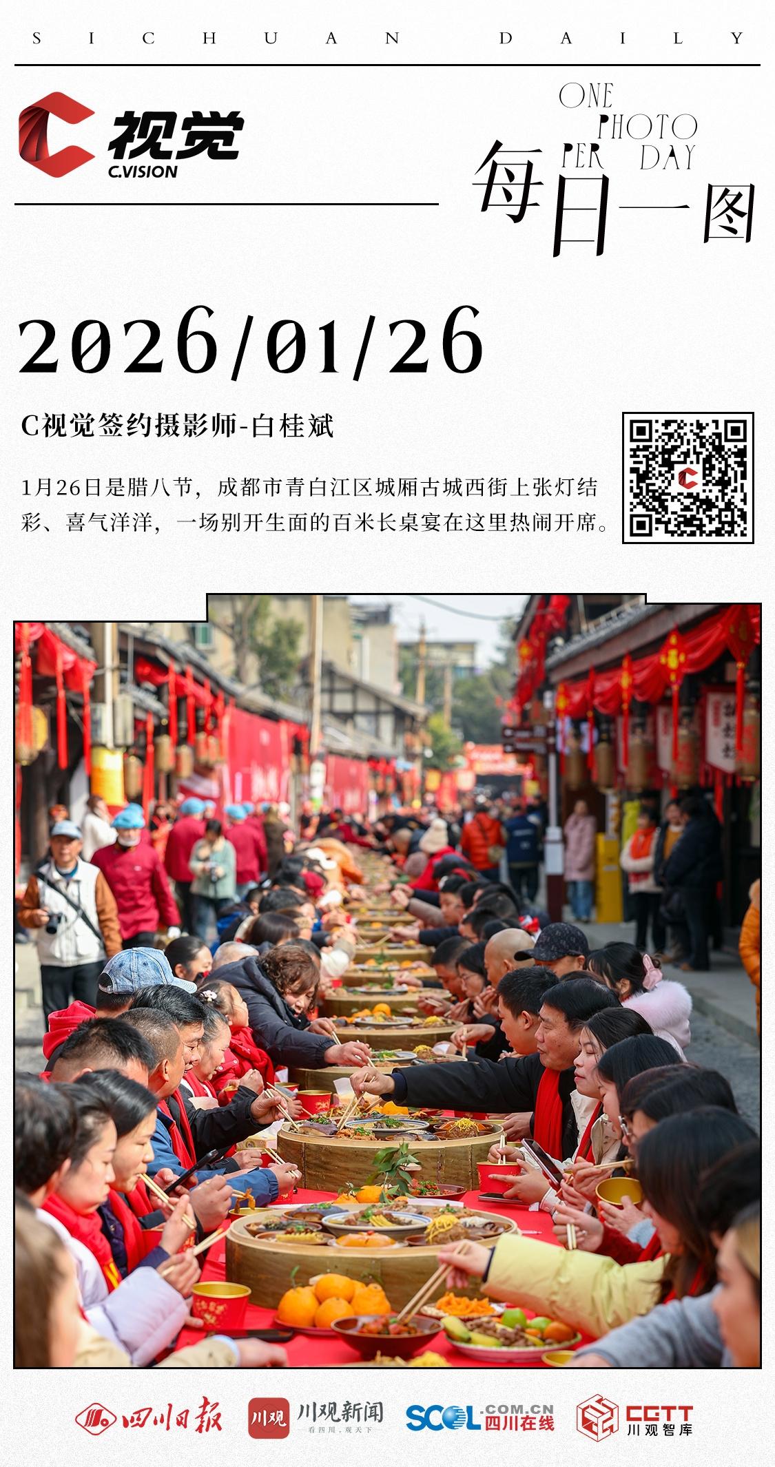 C视觉·每日一图成都青白江:腊八至百米长桌宴飘香(2026年1月26日)