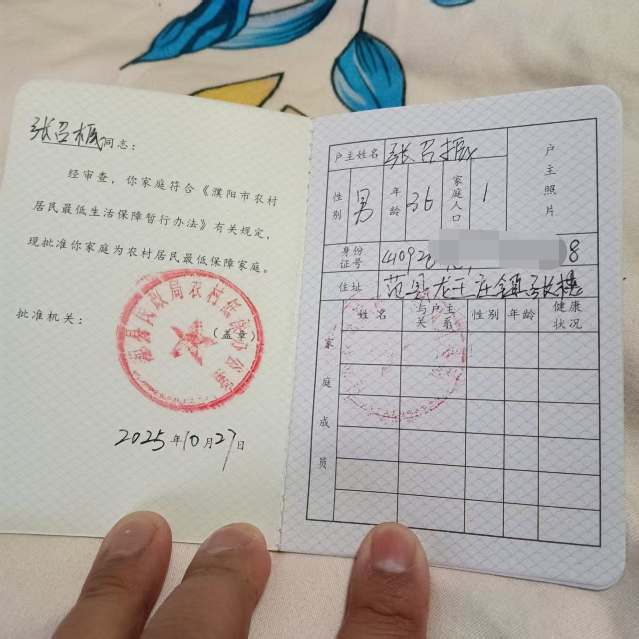 图为张召振的低保证