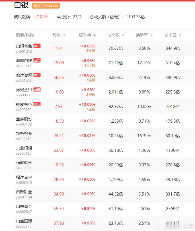 a股白银 【国际白银价格加速上涨 伦敦银、纽约银分别大涨8%、10%】白银市场加速上涨。现货白银日内涨幅扩大至8%,报111.56美元/盎司,本月累计涨56%。COMEX白银期货涨10%,报111.6美元/盎司,本月累计涨57%。沪银期货主力合约涨7.21%,报28288元/千克,本月累计涨66%。