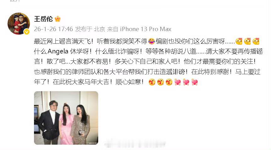 王岳伦发文感觉她们一家三口各有各的风评,而且主要是争议也挺大的,这次也回应了还上