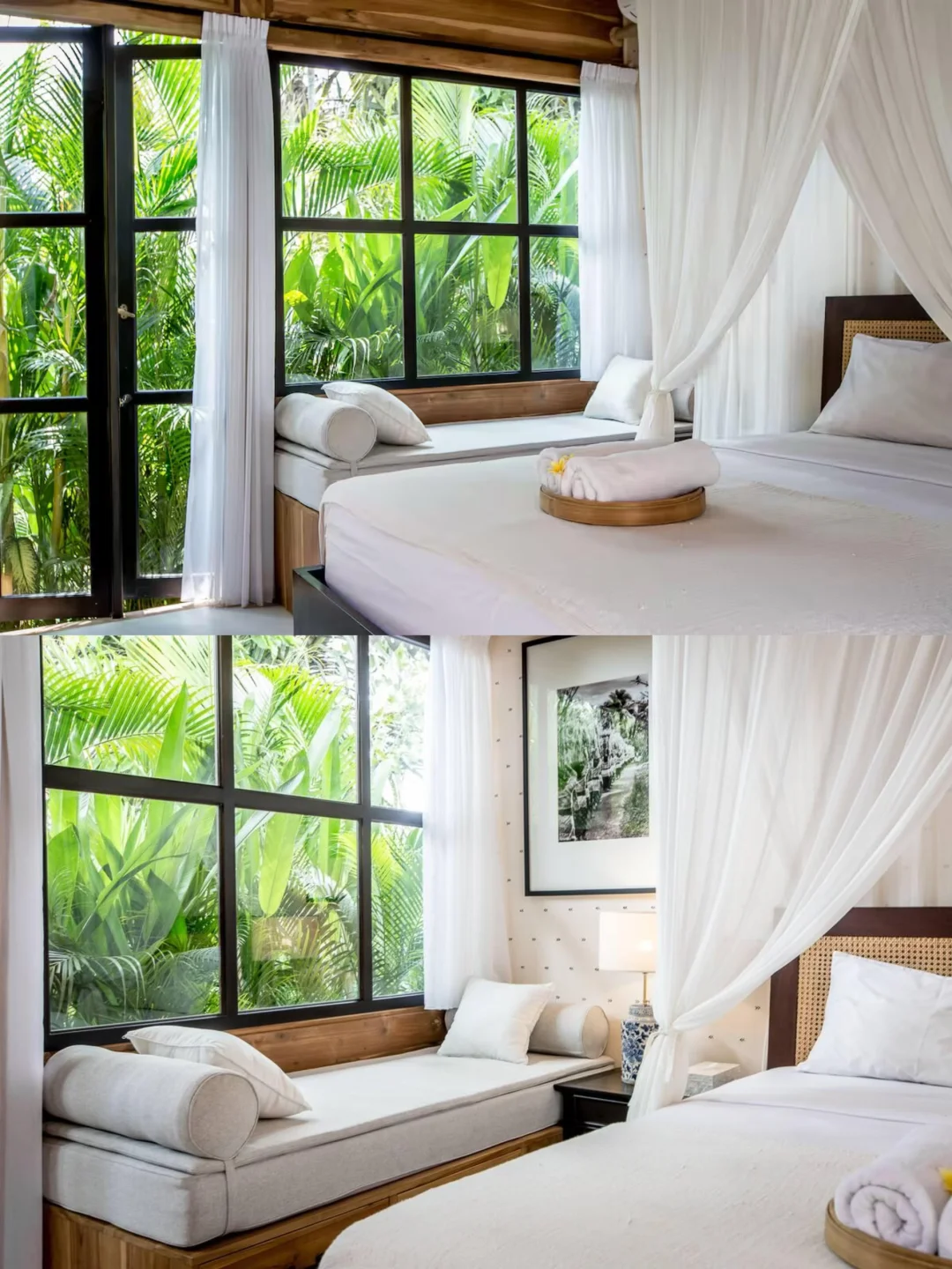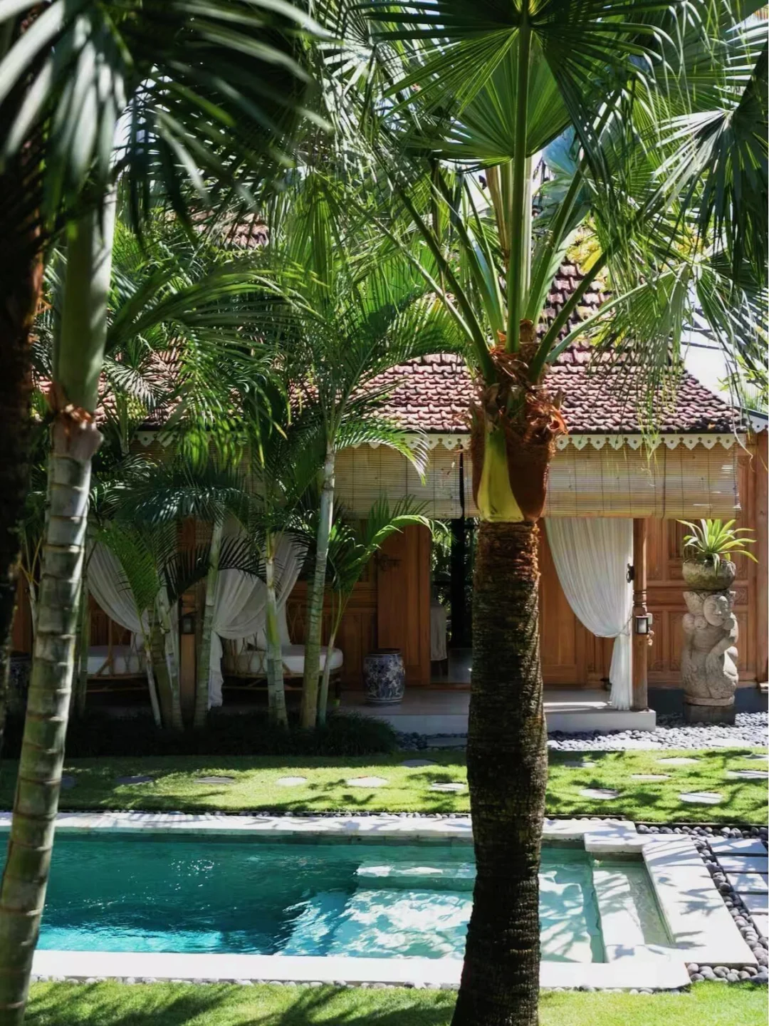 图① Garuda Wisnu Kencana:这座雕像是世界上最高的雕像之一,非常壮观 图② Alas Harum Bali:里面的Topeng Monyer雕像真的很神庙逃亡 图③Pura Lempuyang Temple:天堂之门可以从中间遥望阿贡火山 图④Taman Dedari Dining:餐厅里面的天使雕像精美的令人赞叹! 图⑤Tirta Gangga:一座建在水上的古老皇家花园,水面上是精雕细琢的雕塑 图⑥⑦Wanagiri Hidden Hill:这里有很多拍照打卡的地方,大型秋千、鸟巢、很漂亮的竹子瞭望台 图⑧Lahangan Sweet :巴厘岛相当有名的一棵树,爬上去可以欣赏到黄绿交错的稻田、迷人的蓝色海岸线和阿贡火山🌋 图⑨Tegenungan:是巴厘岛必看的瀑布之一 图⑩Tukad Cepung Waterfall:当阳光穿过曲线形的峡谷,照射在瀑布上时,一切都变得美轮美奂 图⑪Tegallalang:我愿称之为巴厘岛最美梯田 图⑫Bayan ancient Tree:这颗大树据说已经有700多岁了,站在树下抚摸着大树的皮肤,似乎也能感受到其中的灵气 图⑬Gembleng :天然水潭,周围被郁郁葱葱的热带雨林包围,远处云雾缭绕,美到失语 图⑭Taman Ujung:水上宫殿坐落在水池中央,通过桥梁与岸边相连,四周环绕着池塘和花园 图 ⑮ Pura Ulun Danu Tamblingan :巴厘岛北部一座历史悠久且极具神秘色彩的湖畔寺庙 图⑯Amed Beach:超长的黑沙滩,两旁遍布餐厅和酒吧 最后再给大家推荐一家Airbnb!真的远超预期! 民宿名:Tropical Dream Cottage In Central Canggu 💰400多一晚,就在巴厘岛苍古。里面每一间房间都是一座当地传统小木屋 民宿附近还有一条小河,院子里的泳池特别大,特别清亮。房间不大,但是足够精致 出去就是各种餐厅、咖啡、面包店。走路大概10多分钟就可以到海边和苍古中心 📷部分图片来源于网络