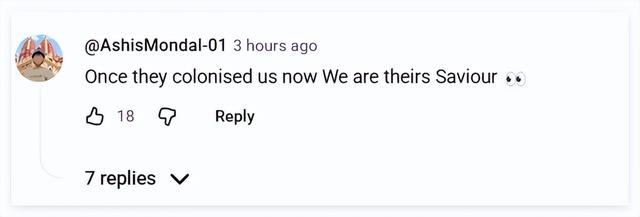 “昔日他们曾殖民我们,如今我们成了他们的救星”,一位印度网民写道。