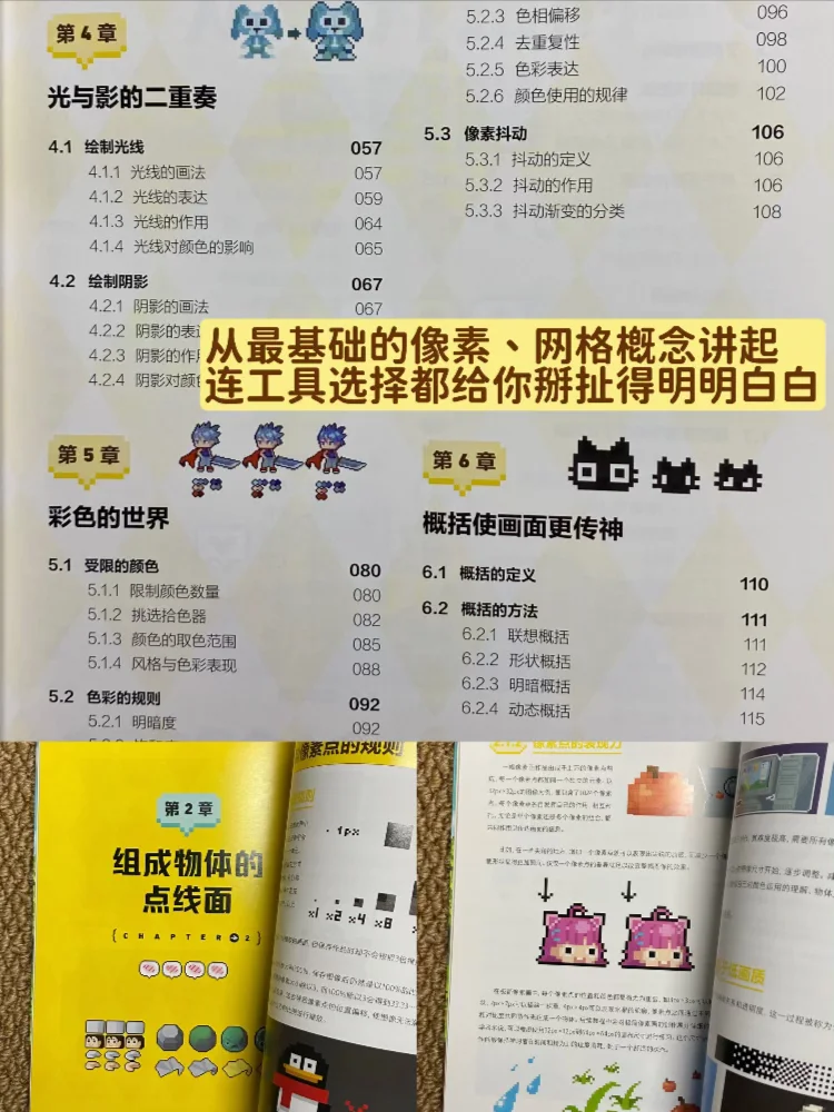 周末来临!! 距离毕业还有569天的上学日记ing p2去后操场那个路上的牌子,好好笑 p3第四只玫瑰外星妮🌹很期待给她上色! p4-8画像素的教程书也是让我找到了,《像素艺术》3秒读懂像素创作入门指南~内容分两部分:1-6章讲像素画,含发展历史、基础与进阶绘制技巧;7-8章解析像素帧动画进阶知识,以及游戏人物流程与素材绘制。看的人很有意思(看完感觉自己能做星露谷了(不是 p9-11一些小日常,一家很好喝的奶茶🥤 p12-13好喜欢秋天🍂叶子金灿灿的太漂亮了!