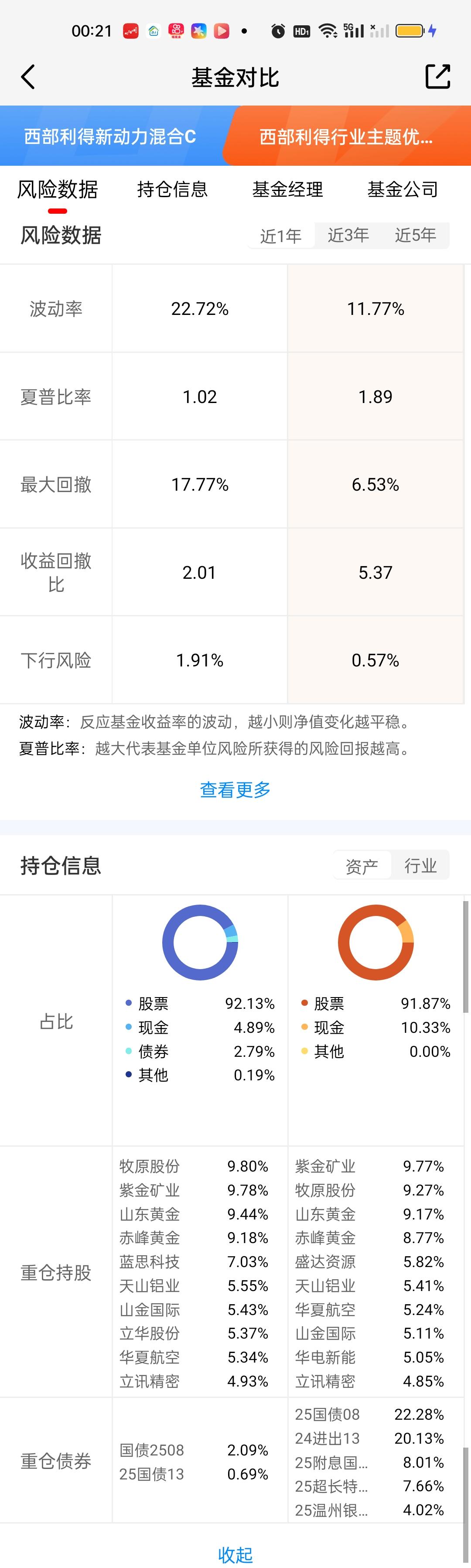 今天排名前七的基金就有3只来自西部利得,仔细对比了这3只基金的各项数据,从持仓来看,非常接近。三只基金前十大重仓股都有七八只是相同的,收益率对比也非常接近。但西部利得行业主题优选的风险数据控制的实在太好了。回撤只有6.53%,这个简直匪夷所思,太夸张了。
