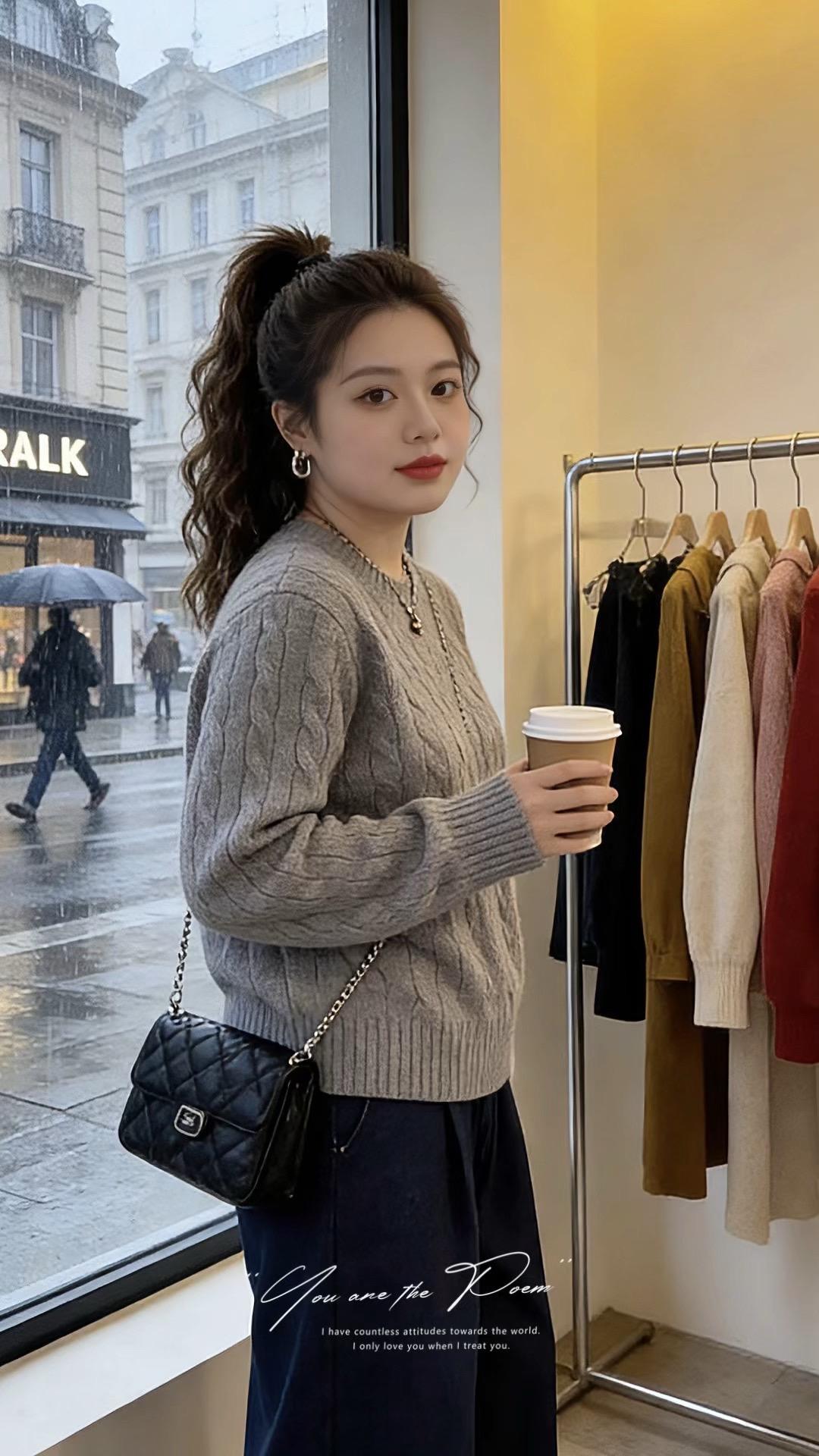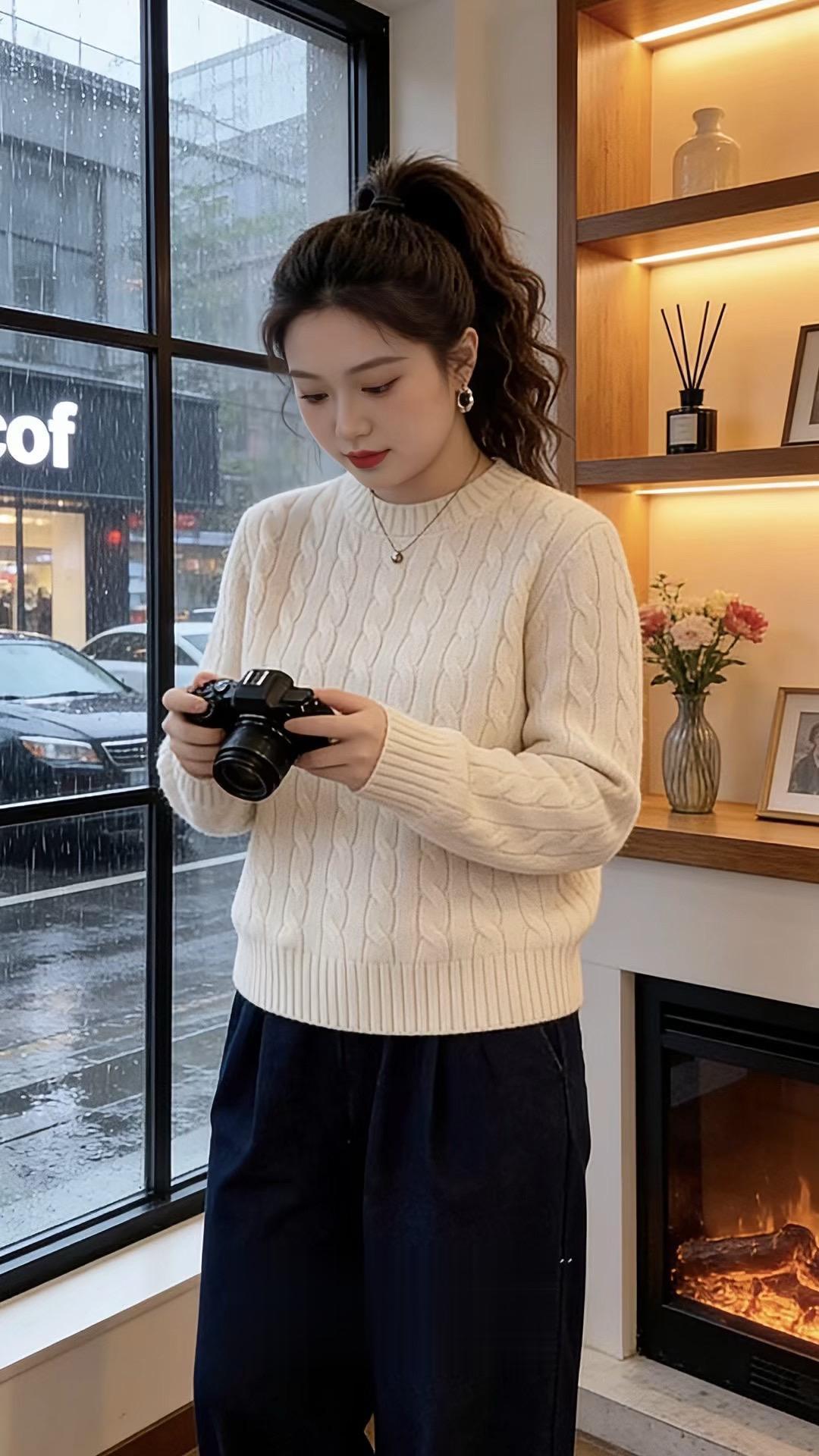 针织绞花宽松圆领毛衣,慵懒随性不挑身材