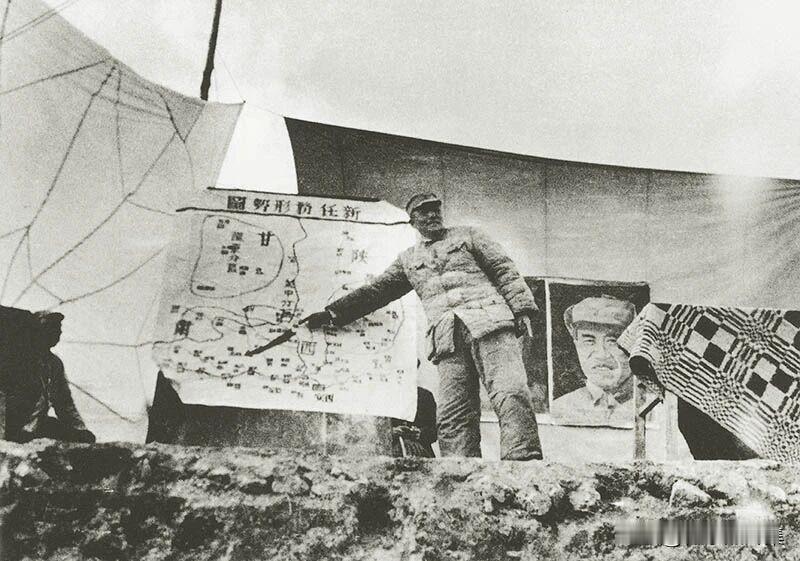 1949年7月,兰州战役前夕,彭德怀给部队讲解形势和任务的场景。彭德怀的讲解,没
