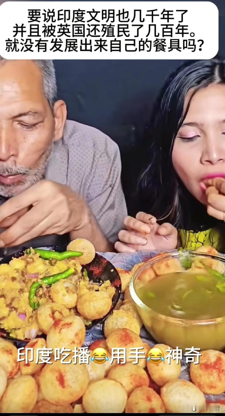 这就是印度的吃播, 他们都是用手吃饭的, 不管是7旬老人, 还是年纪轻轻的女生, 他们习惯了用左手吃饭, 因为他们认为用手吃饭是对食物的尊重,而且还要蘸一下黄色的汤水, 看的实在让人倒胃口, 但是印度网友却看的津津有味, 这可能就是文化的不同吧, 印度被英国统治了数百年, 难道就没有变化? 答案当然是否定的, 印度上流社会都用餐具, 只有底层人民仍然坚持用手吃饭, 这是他们对文化的尊重, 不过确实是非常不卫生, 大家觉得呢?