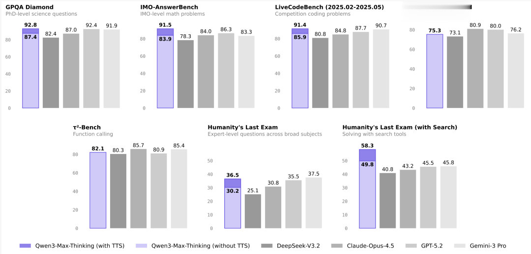 面向即将到来的智能体Agent时代,Qwen3-Max-Thinking还大幅增强了自主调用工具的原生Agent能力。