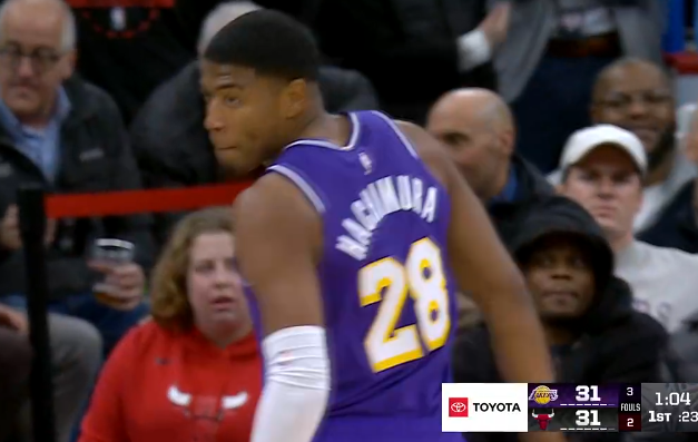 八村垒替补上场3中3连拿7分,湖人首节33-31反超公牛