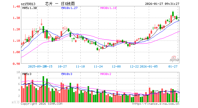 1月27日,半导体ETF(159813)开盘跌0.39%,报1.279元。半导体ETF(159813)重仓股方面,中芯国际开盘涨0.07%,海光信息涨0.50%,寒武纪涨0.00%,北方华创跌0.44%,兆易创新跌0.89%,中微公司涨0.22%,澜起科技跌1.21%,豪威集团跌0.10%,拓荆科技跌0.03%,长电科技跌0.27%。