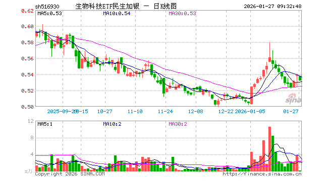 1月27日,生物科技ETF民生加银(516930)开盘跌0.19%,报0.538元。生物科技ETF民生加银(516930)重仓股方面,药明康德开盘涨0.16%,迈瑞医疗涨0.08%,恒瑞医药涨0.40%,上海莱士涨0.00%,复星医药涨0.78%,百济神州涨0.13%,长春高新涨0.01%,康龙化成涨0.75%,泰格医药涨0.95%,甘李药业涨0.45%。