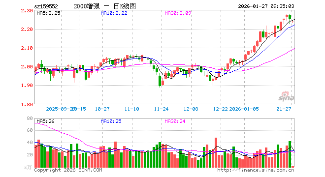 1月27日,中证2000增强ETF(159552)开盘跌0.67%,报2.235元。中证2000增强ETF(159552)重仓股方面,春秋电子开盘跌0.13%,亚太股份跌0.47%,新亚电子跌0.08%,豪鹏科技涨0.00%,新日股份跌4.64%,海利得涨0.14%,苏博特跌0.88%,永茂泰涨0.35%,久祺股份跌0.06%,理邦仪器涨0.00%。
